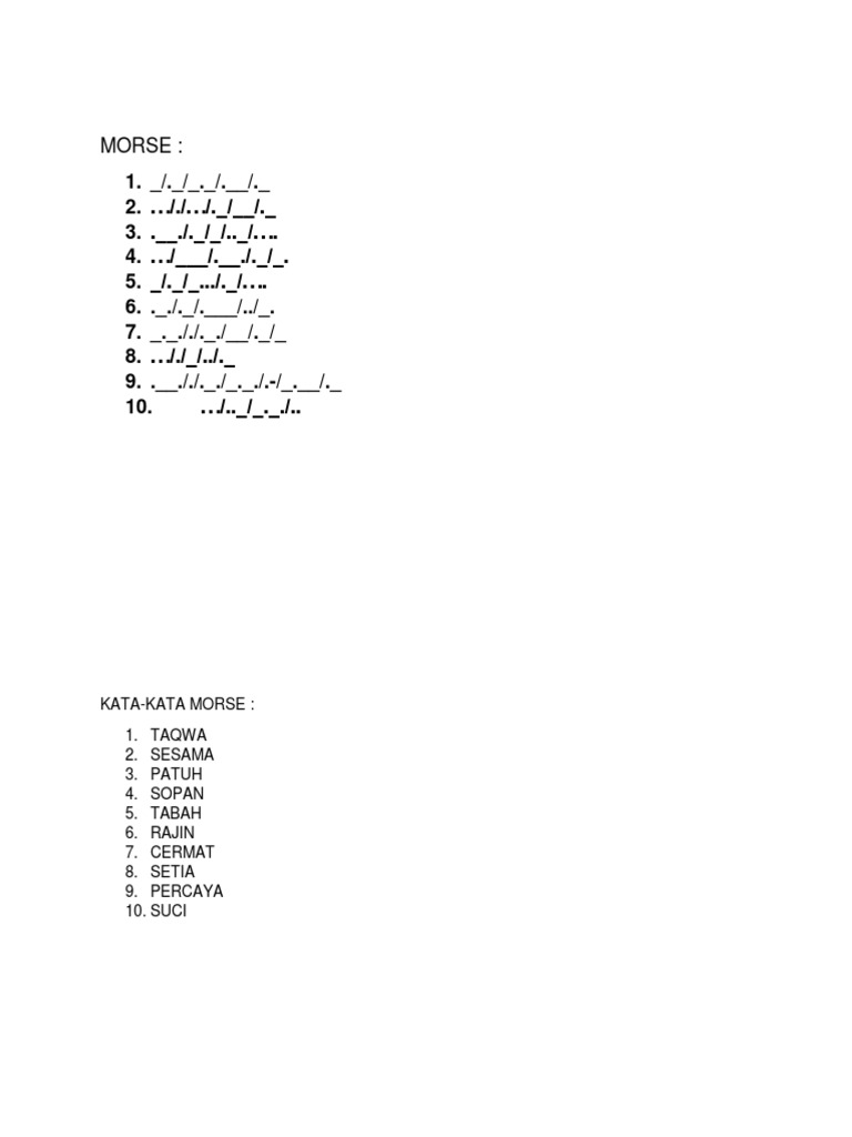 Sandi Pramuka Terjemahan Ø£ØØ¯Ø« إصدار ÙÙ Android ØªÙØ²ÙÙ Apk from lh3.googleusercontent.com A powerful learning tool is our morse code translator with audio. morse code to english . I found it easy to translate into morse code, however morse code to english gives me some issues. Morse code translator is a translator that lets anyone translate text to morse code and decode morse code to text easily. The recipient can understand the message without additional decoding equipment. Kode morse atau 'sandi morse' adalah sistem representasi huruf, angka, tanda baca dan sinyal dengan menggunakan kode titik dan garis yang disusun mewakili karakter tertentu1 pada alfabet. Silahkan share jika berguna dan bermanfaatjangan lupa like dan subscribe. In the output, i have set it to use vertical bars (|) to represent dashes and apostrophes (') to represent dots, as i found it was clearer where the.