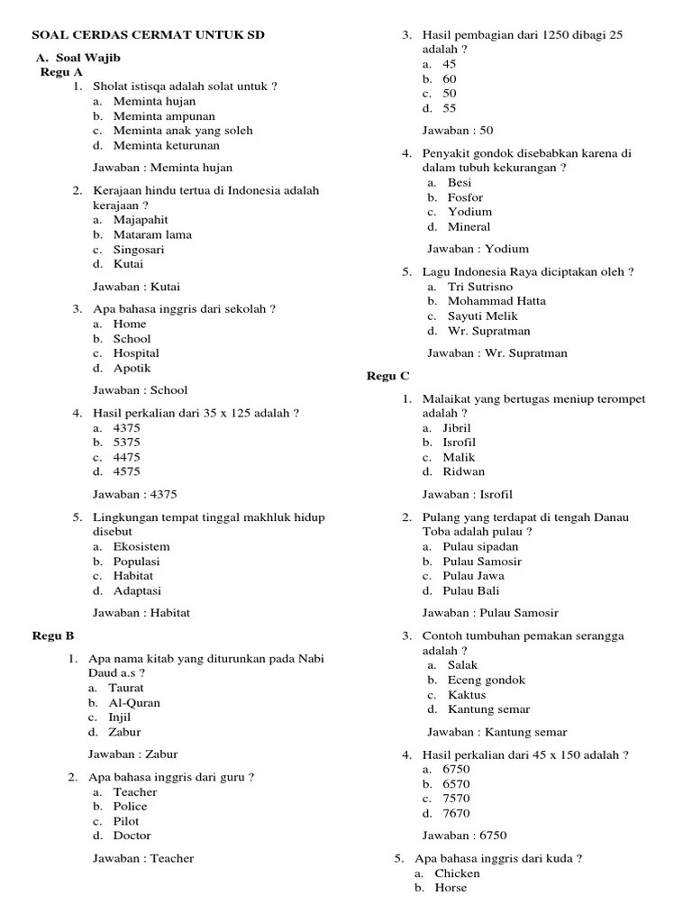 kumpulan soal dan jawaban pembelajaran pkn sd 50 contoh soal pilihan ganda teks eksplanasi dan jawabannya soal pengetahuan umum docx.